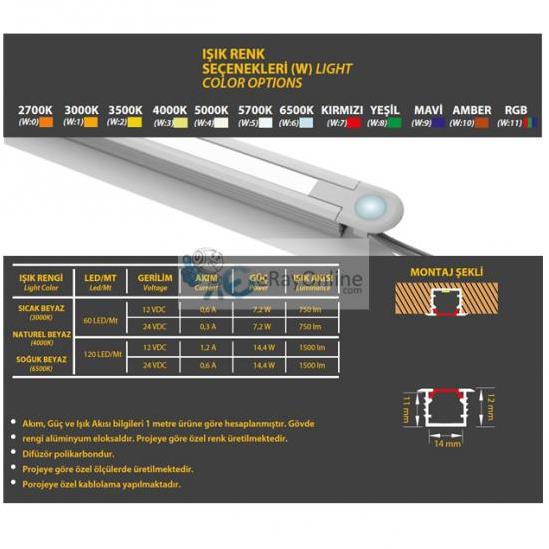 Akım, Güç ve Işık Akısı bilgileri 1 metre ürüne göre hesaplanmıştır.