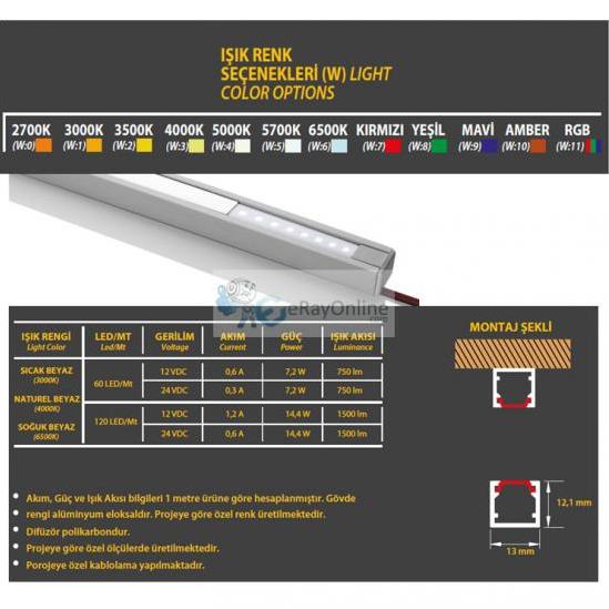 Akım, Güç ve Işık Akısı bilgileri 1 metre ürüne göre hesaplanmıştır.